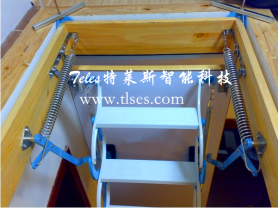 1、自动型伸缩楼梯采用电动推杆和两根加大油压杆来控制门板,使门板轻松自动开门和关门;同时电动推杆上的电机有自锁功能,不会使门板下滑;而且还有手动功能,